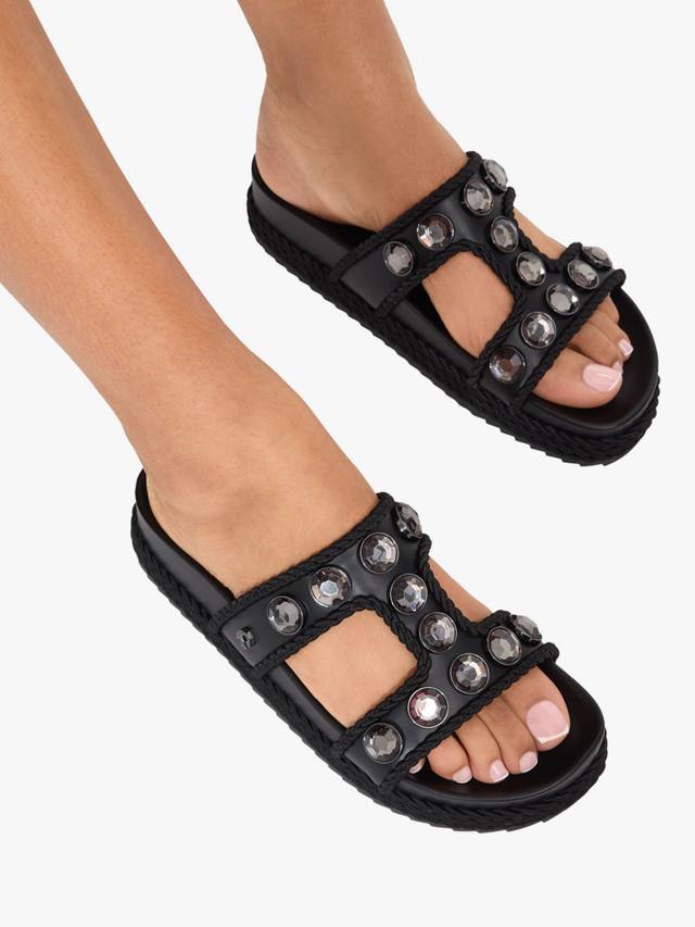 Дополняя вашу коллекцию для теплой погоды, эта пара босоножек от Carvela с верхом, украшенным драгоценными камнями, обеспечивает долговечную и удобную носку. Туфли на плоском каблуке с отделкой веревочкой и закругленным носком для придания повседневного шарма.