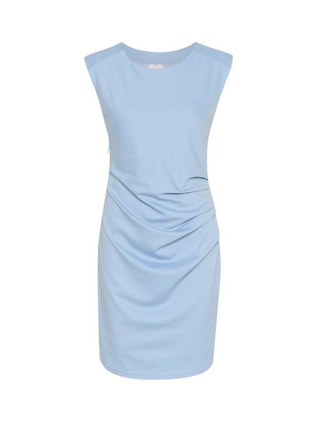 Элегантное платье-футляр с рюшами на талии, длиной до колен от KAFFE изготовлено из мягкой смеси шамбре. Облегающий фасон без рукавов с круглым вырезом - воплощение минимализма.