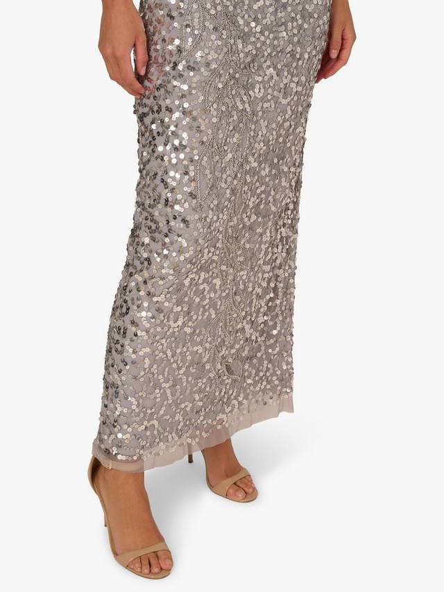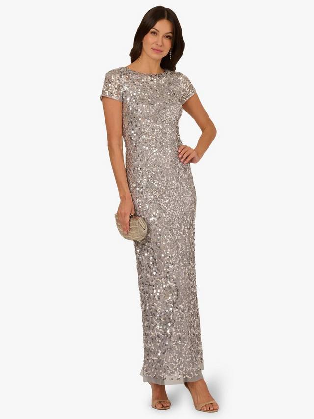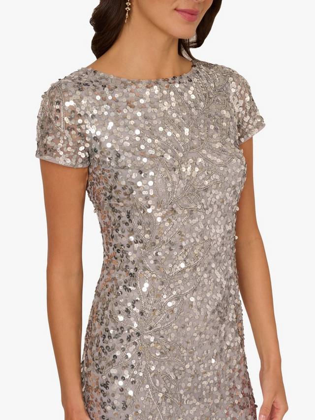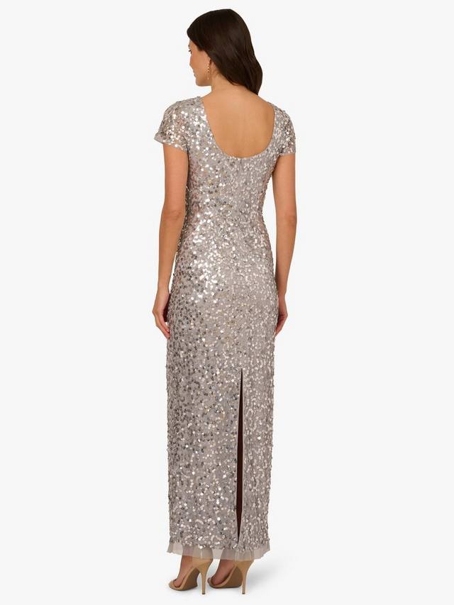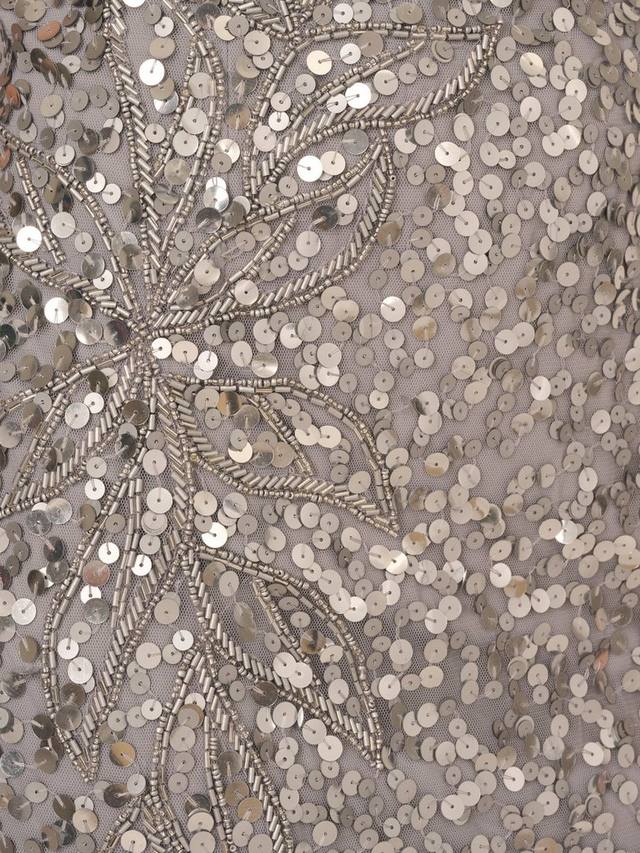 Есть блеск, а есть еще это роскошное платье, непревзойденное по мерцанию и сиянию. Это эффектное платье в полный рост вручную украшено блестками и бисером, которые переливаются при каждом движении. Приталенный силуэт-колонна с круглым вырезом, овальной спинкой и короткими рукавами, а также застежкой-молнией сзади. Роскошное и невероятно элегантное, это платье создано для торжественных выходов и вечеров на танцполе.