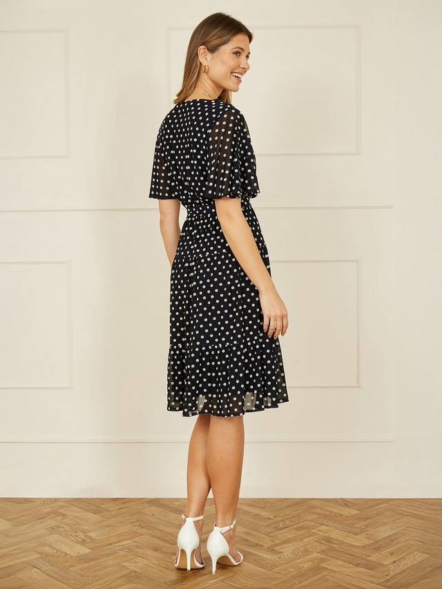 Сетчатое платье миди в горошек Yumi, темно-синий/белый