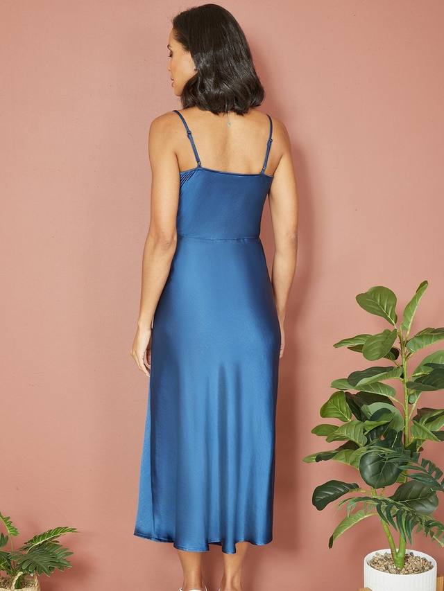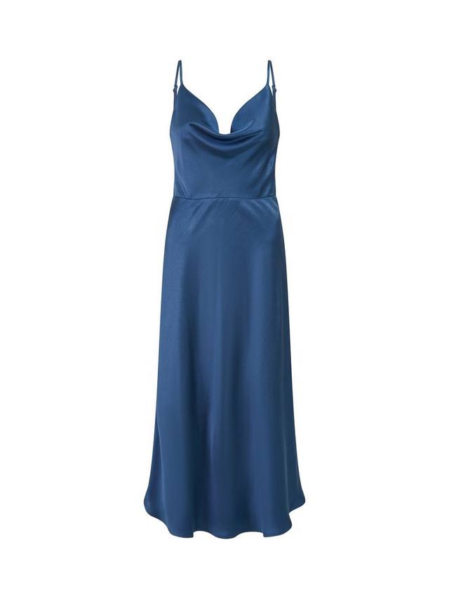 Атласное платье с капюшоном на шее Yumi, темно-синий