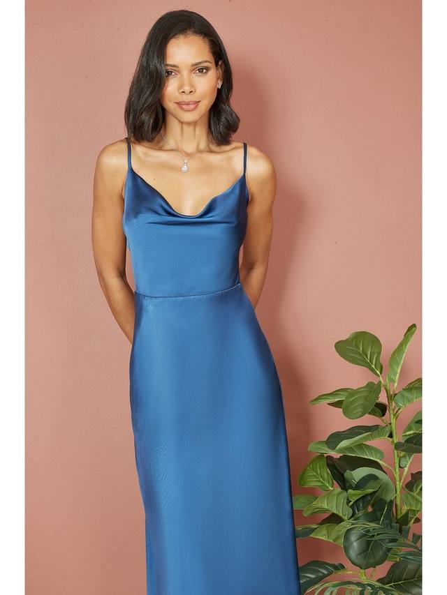 Если вам нужно платье, в котором вы почувствуете себя на миллион долларов - остановите свой выбор на этом платье-слипе от Yumi. Облегающее изгиб тела роскошное атласное платье позволит вам незаметно проскользнуть в любую комнату, и все взгляды будут прикованы к вам. Длина миди, бретельки на бретельках и вырез с капюшоном не оставляют равнодушными. Оденьте в них своих подружек невесты, и они будут любить вас вечно!