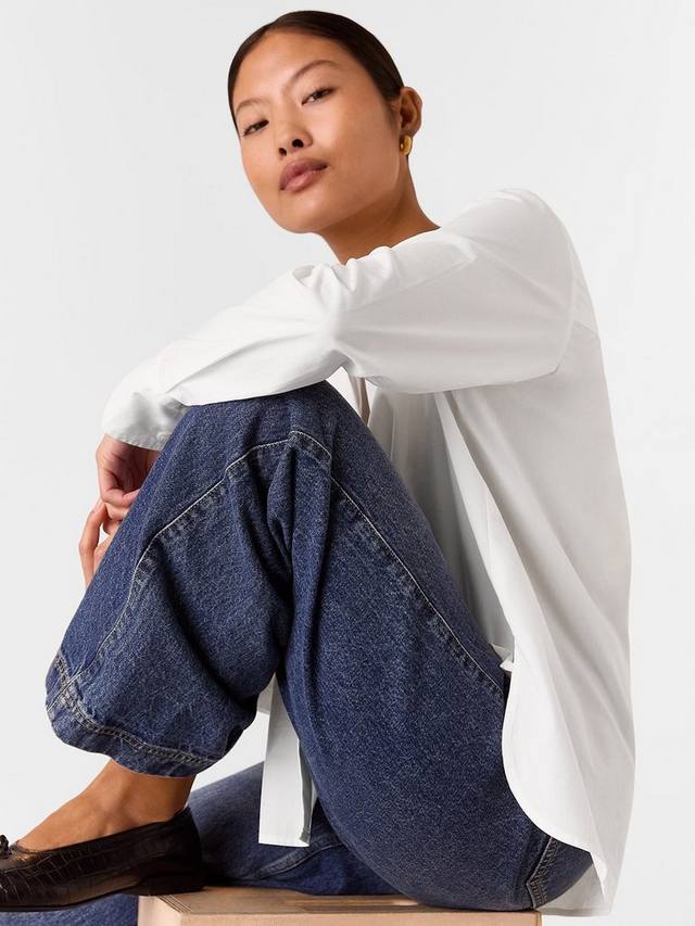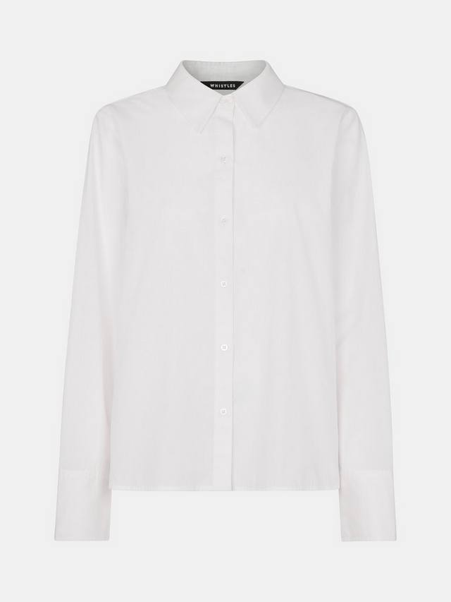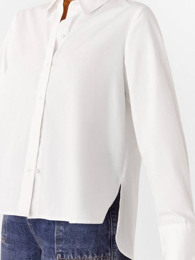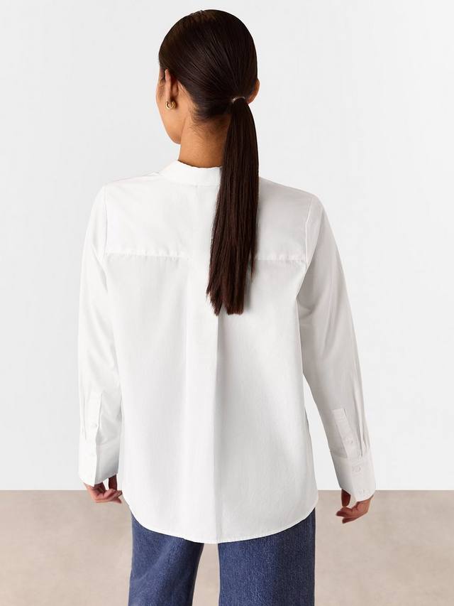 Эта миниатюрная рубашка от Whistles свободного кроя со слегка заниженным низом сзади из чистого хлопка с воротником-стойкой, пуговицами спереди и длинными рукавами с манжетами.