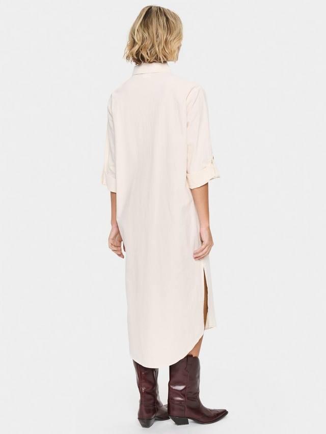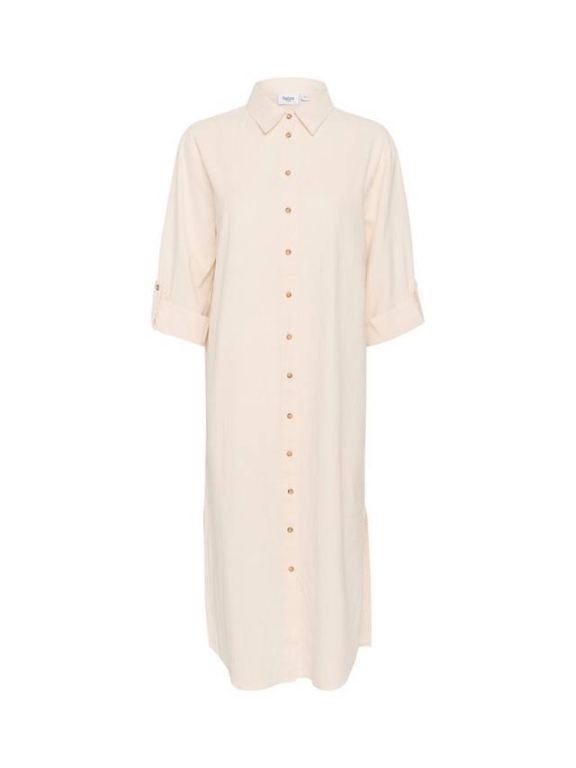 Платье-рубашка Zalinda простое и повседневное, оно идеально подходит для гардероба этого сезона. У него отложной воротник и пуговицы, а также обычная посадка. Рукава укорочены и подвернуты с помощью валиков на пуговицах, длина платья доходит до середины икр.