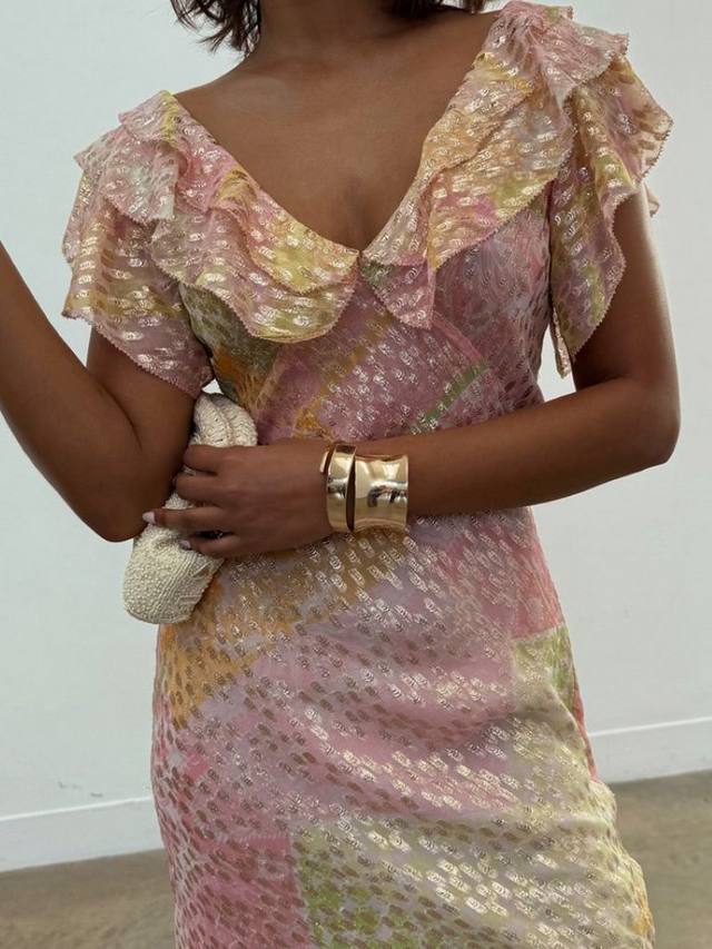 Будьте непринужденны, но элегантны в жаккардовом платье Tilda. Это платье с бестселлером в крапинку и привлекательным вырезом с оборками идеально подойдет для любого случая.