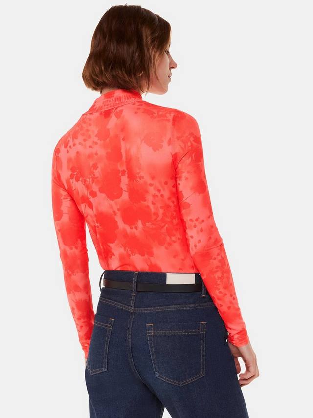 Этот топ с высоким воротом от Whistles, выполненный как самостоятельное изделие, так и из многослойного материала, украшен размытым принтом в виде цветов на сетчатой основе.