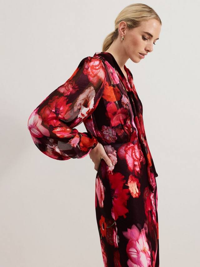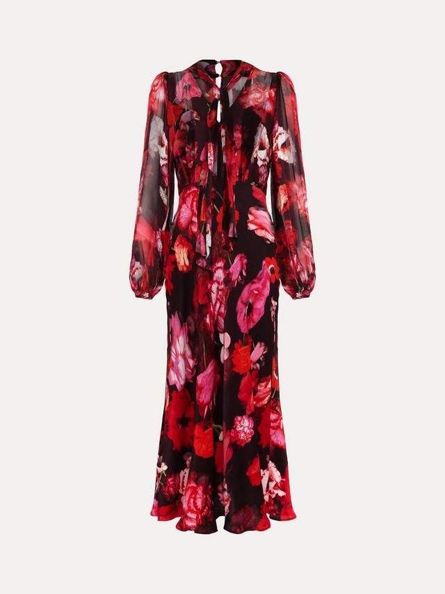 Женственное и утонченное платье Eleni с новым привлекательным цветочным принтом, отутюженным вручную в нашем ателье. Затянутые манжеты создают объемные рукава-блузоны, переходящие в силуэт миди. Элегантную завязку на вырезе можно носить свободно или в виде бантика для универсального стиля. Наденьте туфли на каблуке для создания образа, готового к мероприятию, или дополните их любимыми ботинками.