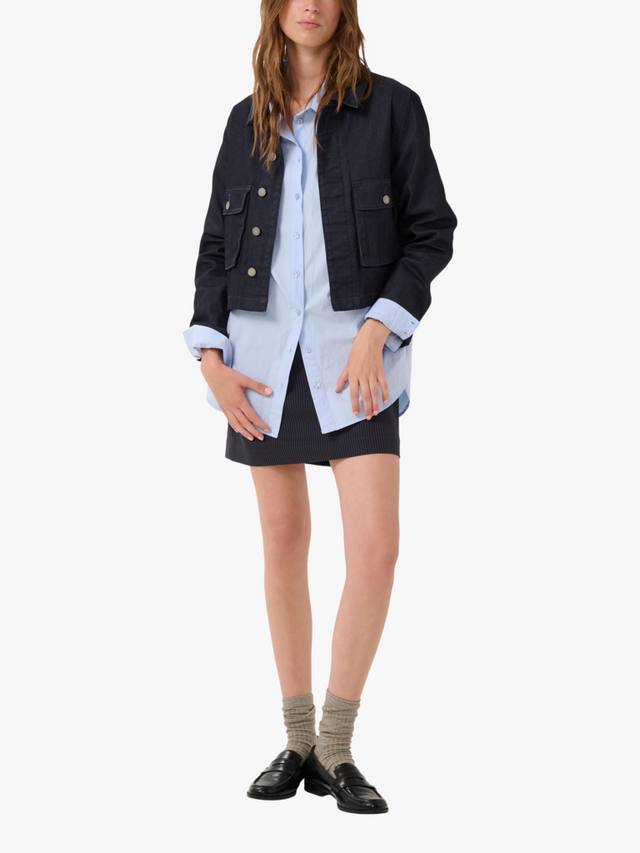 Эта джинсовая куртка свободного покроя из коллекции MY ESSENTIAL CLOSURE, которую можно легко надеть поверх выходного наряда, имеет укороченный крой.