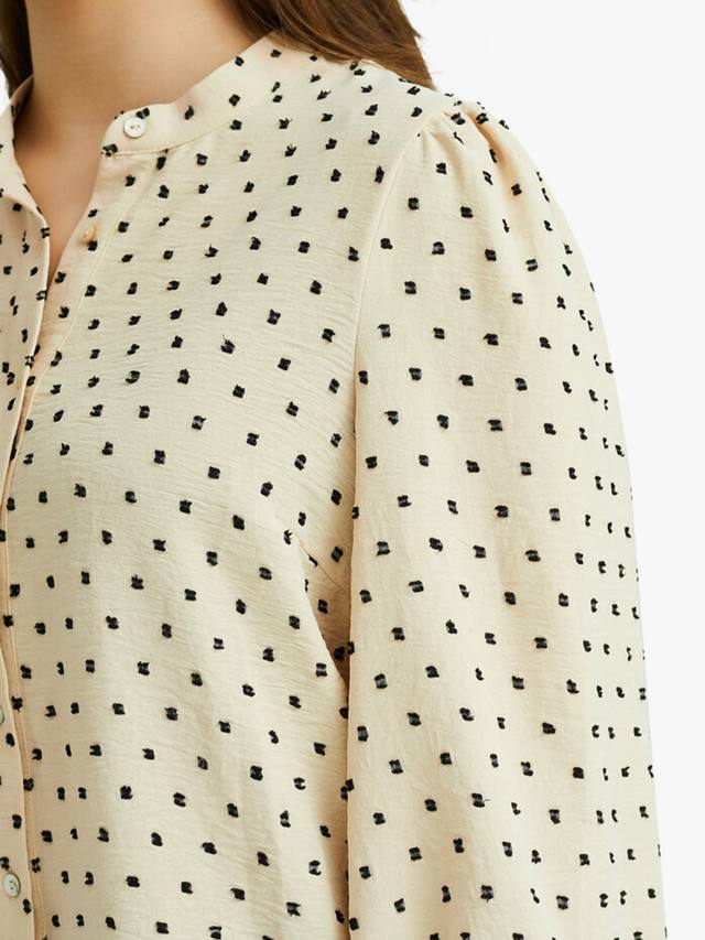Рубашка Vanessa с длинным рукавом - это рубашка с длинными рукавами в горошек. Рубашка с круглым вырезом и застежкой на пуговицы спереди. Рубашка сидит точно по размеру.