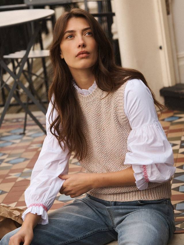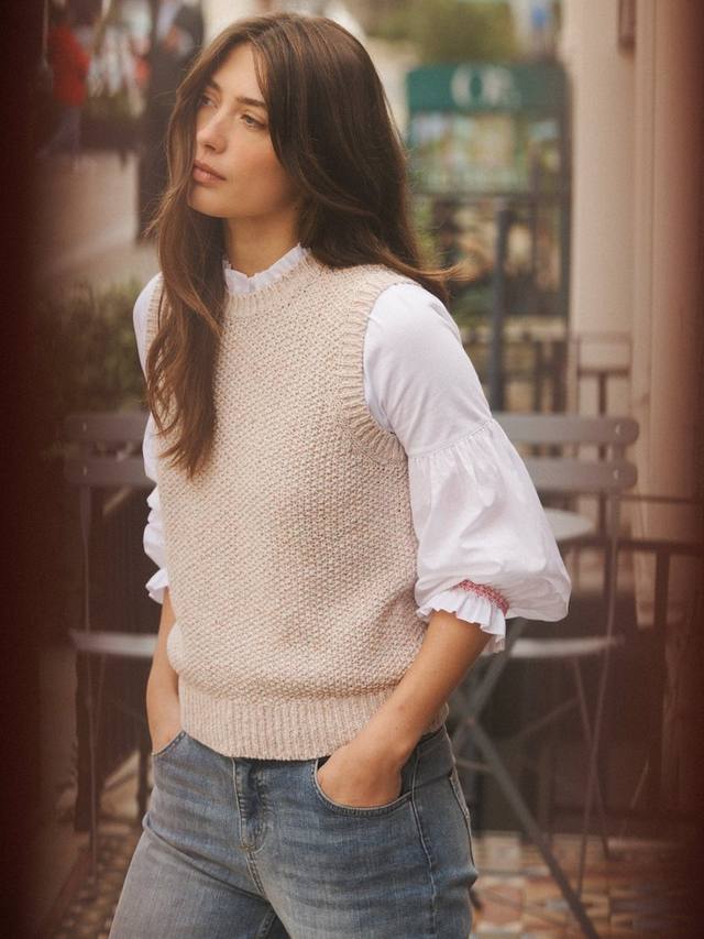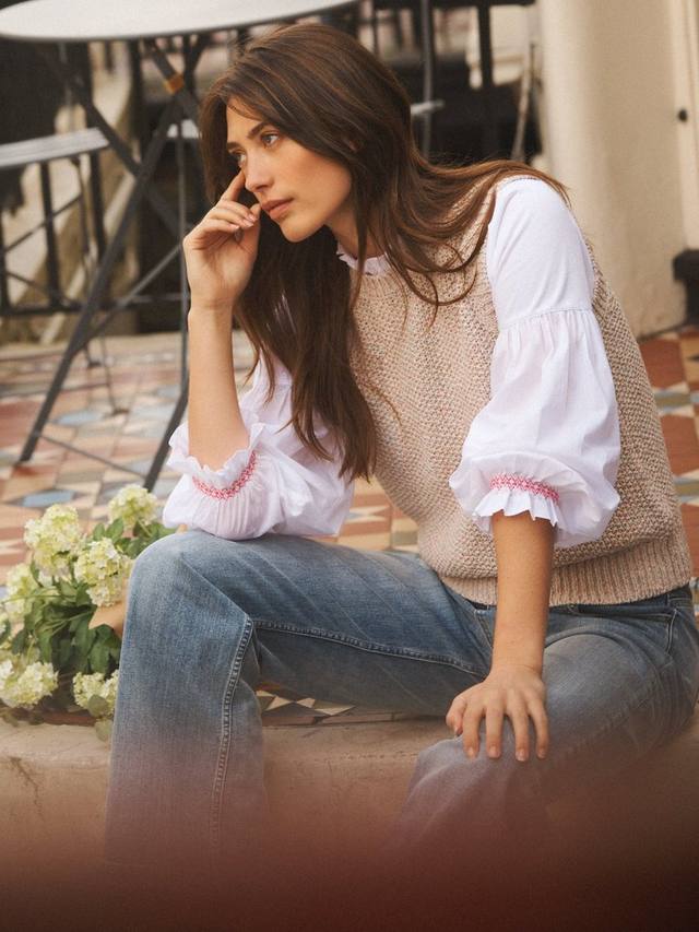 Представляем Morgan. Ваш новый весенний фаворит. В этой майке представлен новый трикотаж с вышивкой moss, придающий ей очаровательный вид ручной вязки. Выполненное из мягкой смеси хлопка, льна и шелка noil, изделие из плотного трикотажа, вырез в рубчик, манжеты и низ создают ощущение уюта. Идеально сочетается с классической рубашкой NRBY и джинсами для создания стильного весеннего образа.