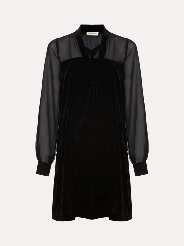 Классическое мини-платье, которое необходимо вашему гардеробу. Платье Seraphine с длинными рукавами-блузонами и прозрачной кокеткой имеет силуэт в стиле туники. Роскошный бархатный материал и шарф, украшающий V-образный вырез, создают неподвластный времени женственный стиль. Изготовлено с использованием переработанных материалов, что помогает нам снизить наше воздействие на планету.