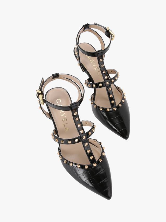 Туфли на каблуке Samba court с верхом из искусственной кожи и эффектными золотистыми заклепками на ремешках. Закрытый носок заостренный, а каблук выполнен на шпильке.