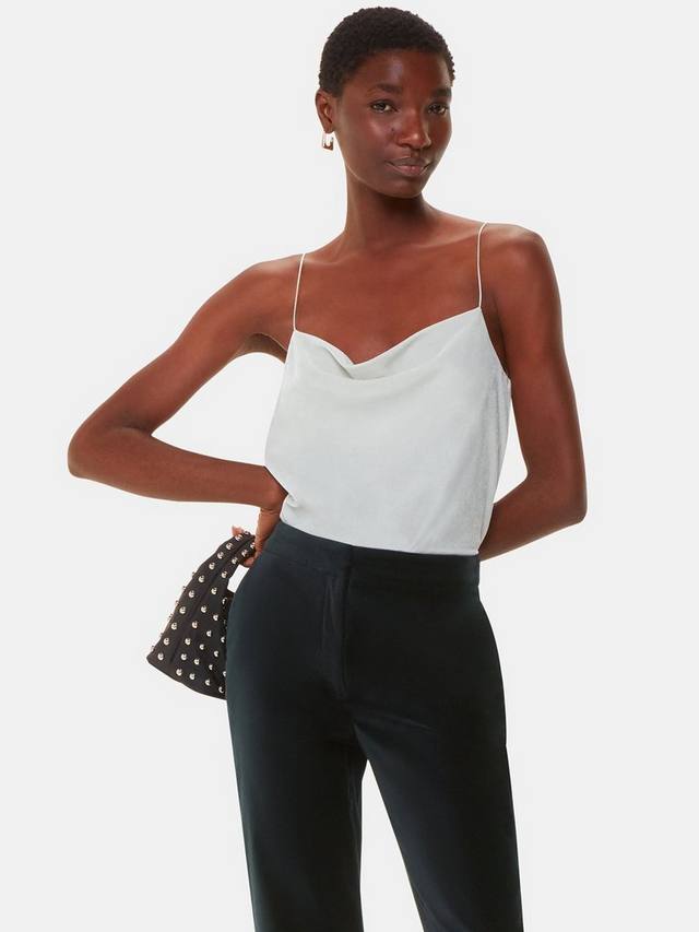 Эти брюки от Whistles, сшитые на заказ и имеющие прямой силуэт, высоко сидят на бедрах и изготовлены из удобной хлопчатобумажной смеси с роскошной бархатной отделкой.