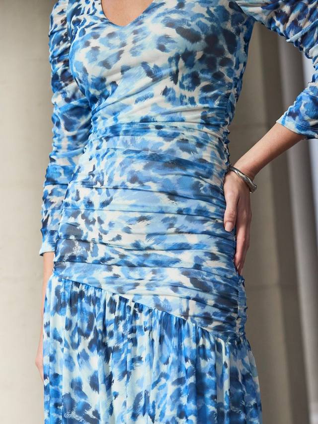 Сетчатое платье с рюшами и леопардовым принтом Sosandar, синий 8 656₽