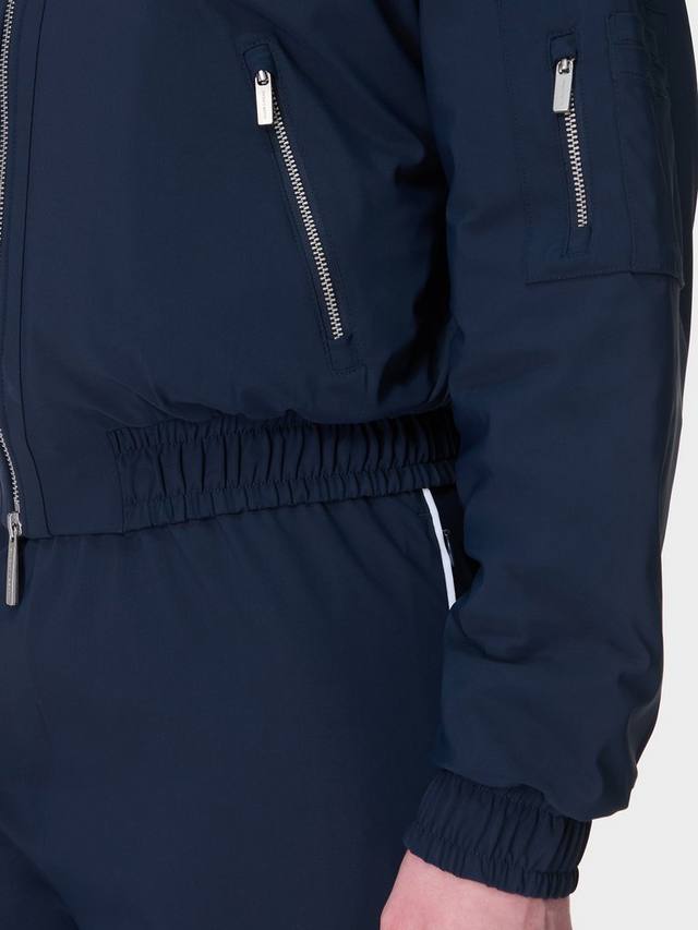 Элегантный бомбер с эффектным дизайном для вашего гардероба в холодную погоду. Быстросохнущая итальянская ткань с подкладкой из теплой и легкой подкладки для использования в дороге. Свободный крой, заниженные плечи и классический бейсбольный воротник. Застегивается на двустороннюю молнию, имеет два боковых кармана и карман на молнии на руке. Гофрированный эластичный низ и манжеты.
