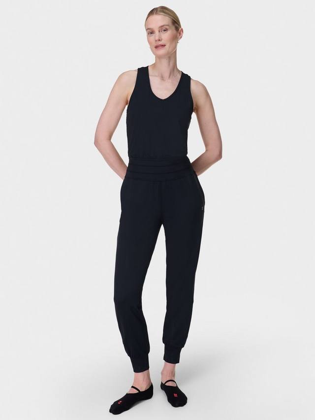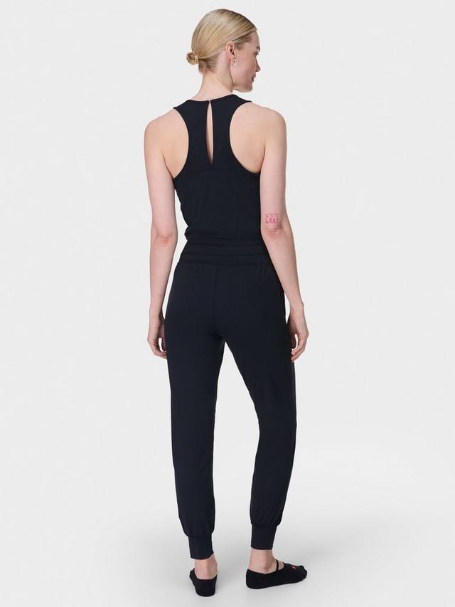 Комбинезон для тренировок с низкой нагрузкой. Обновленная ткань, состоящая на 85% из переработанной ткани, ультрамягкая, гладкая и впитывает пот. Свободный крой, V-образный вырез, приталенный пояс и манжеты на щиколотках позволяют оставаться на месте во время движения. Изготовлено с использованием переработанных материалов, что помогает нам снизить наше воздействие на планету.