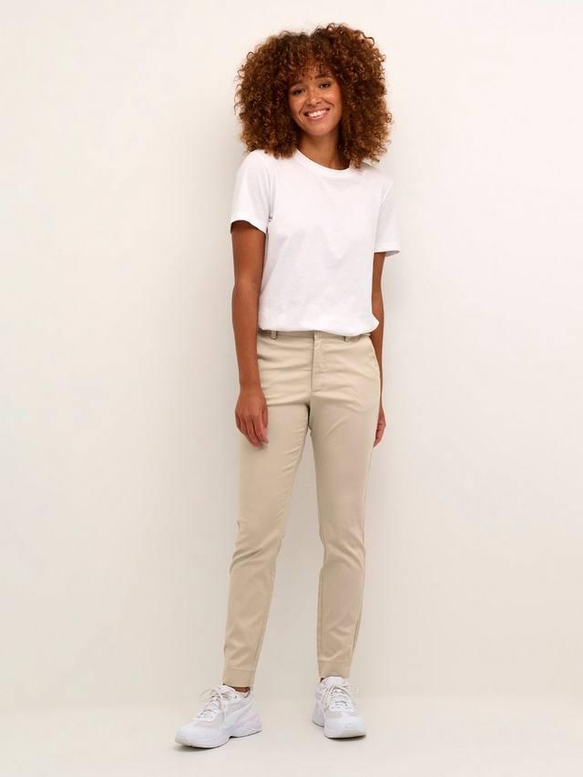 Эти брюки-чинос от KAFFE, сочетающие в себе элегантность и непринужденность, естественно сидят на бедрах и имеют приталенный крой.