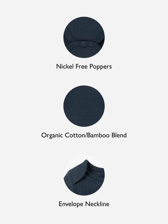Боди в рубчик с коротким рукавом изготовлено из мягчайшей смеси бамбука и органического хлопка с небольшим растяжением для удобства движений. Детское боди имеет практичный вырез-конверт и попперы без никеля на промежности, упрощающие переодевание.