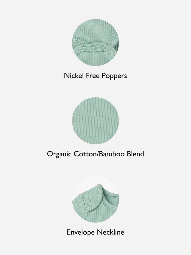 Боди в рубчик с коротким рукавом изготовлено из мягчайшей смеси бамбука и органического хлопка с небольшим растяжением для удобства движений. Детское боди имеет практичный вырез-конверт и попперы без никеля на промежности, упрощающие переодевание.