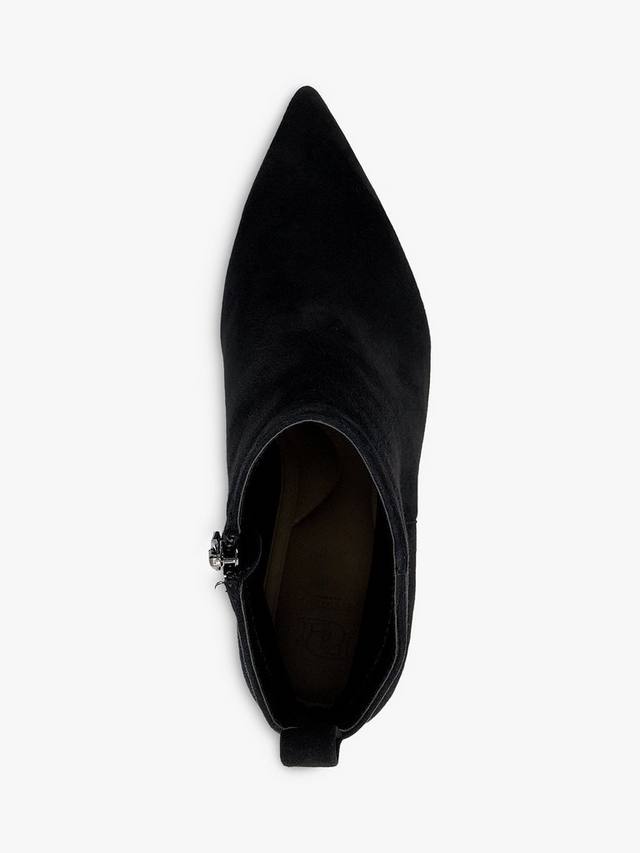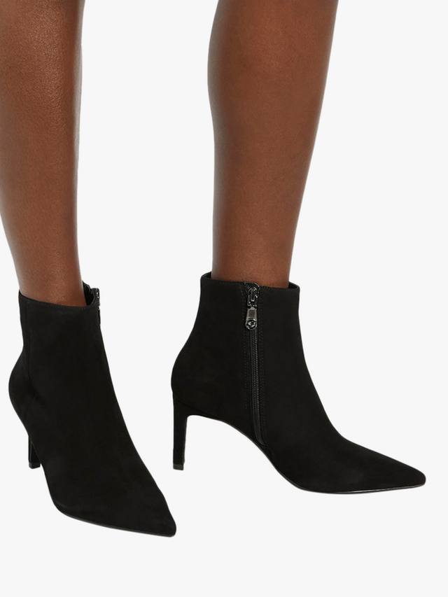 Эта пара ботинок от Dune силуэта по щиколотку с качественным замшевым верхом для сезонной носки. Они на шпильке и с заостренным носком.