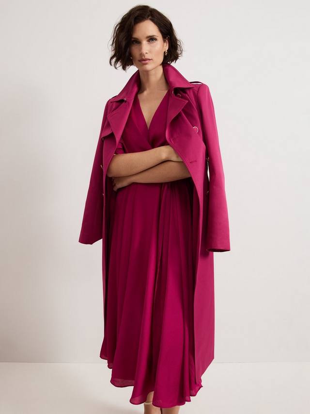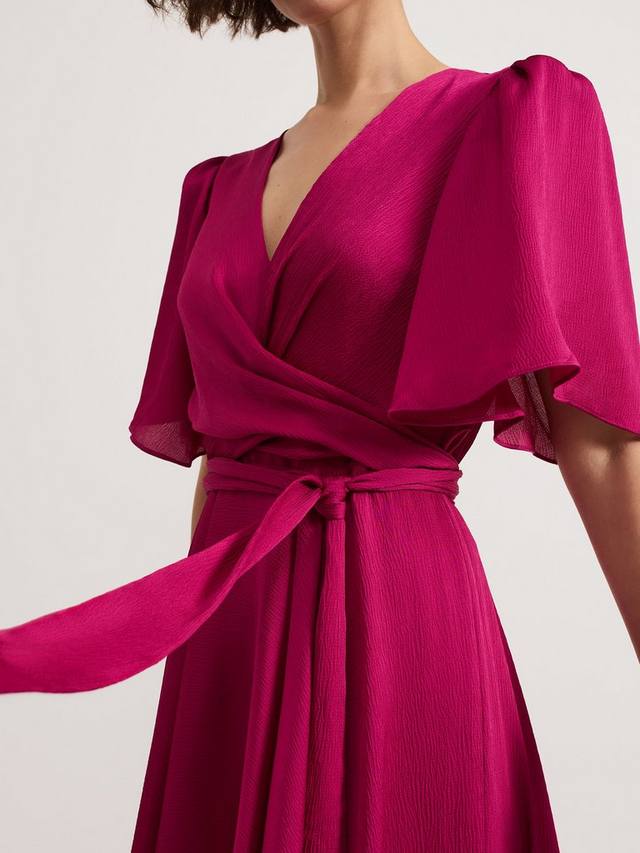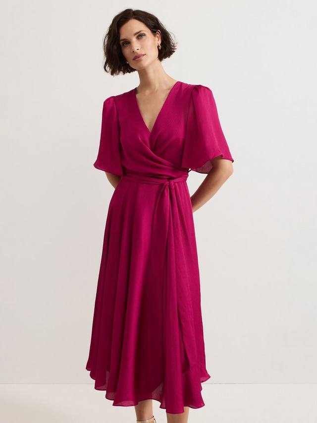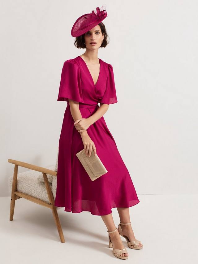 Простота сочетается с элегантностью в платье Abbie от Phase Eight. Это платье с искусственным запахом красивого ягодно-розового оттенка, женственным V-образным вырезом и расклешенными рукавами создает силуэт, который никогда не выйдет из моды. Сочетайте с подходящими розовыми аксессуарами и вашими любимыми украшениями для создания гармоничного образа на мероприятие.