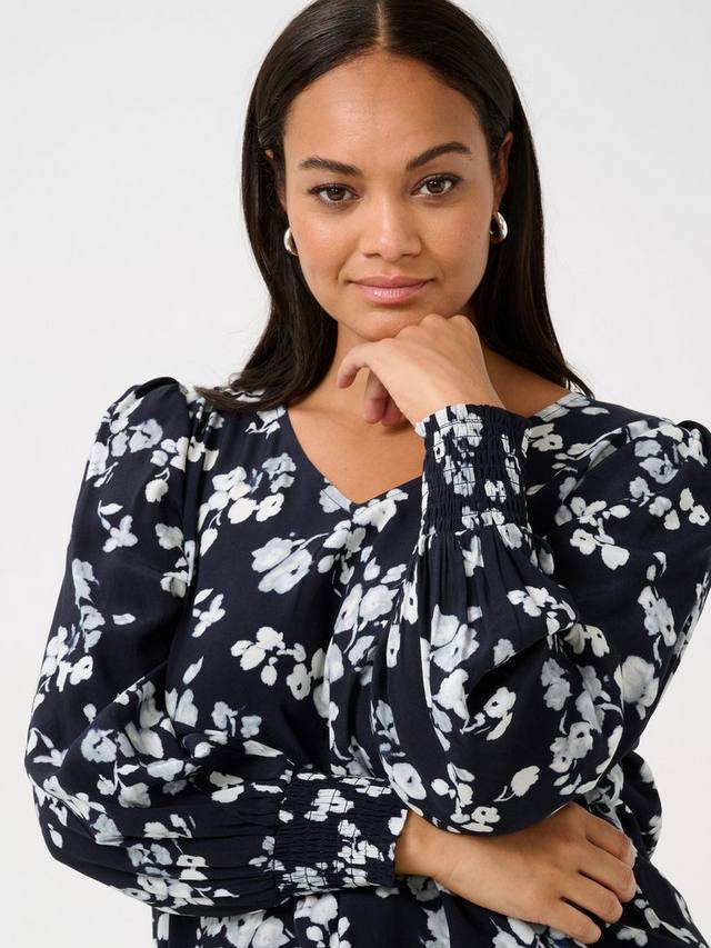 Топ с цветочным рисунком из ситца KAFFE Curve, цвет Marine/Multi