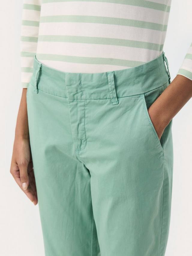 Брюки Soffys - это простая и классическая пара брюк чинос. Они укорочены ниже икр и имеют приталенный крой. Брюки с высокой талией и широким поясом застегиваются на молнию, крючок и планку. Сзади у них прорезные карманы, а спереди карманы косые.
