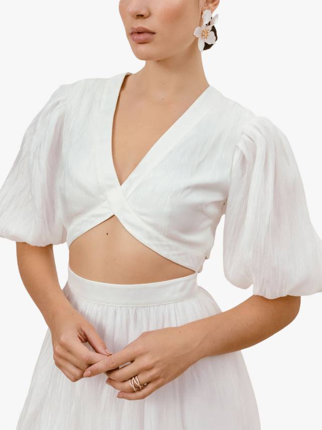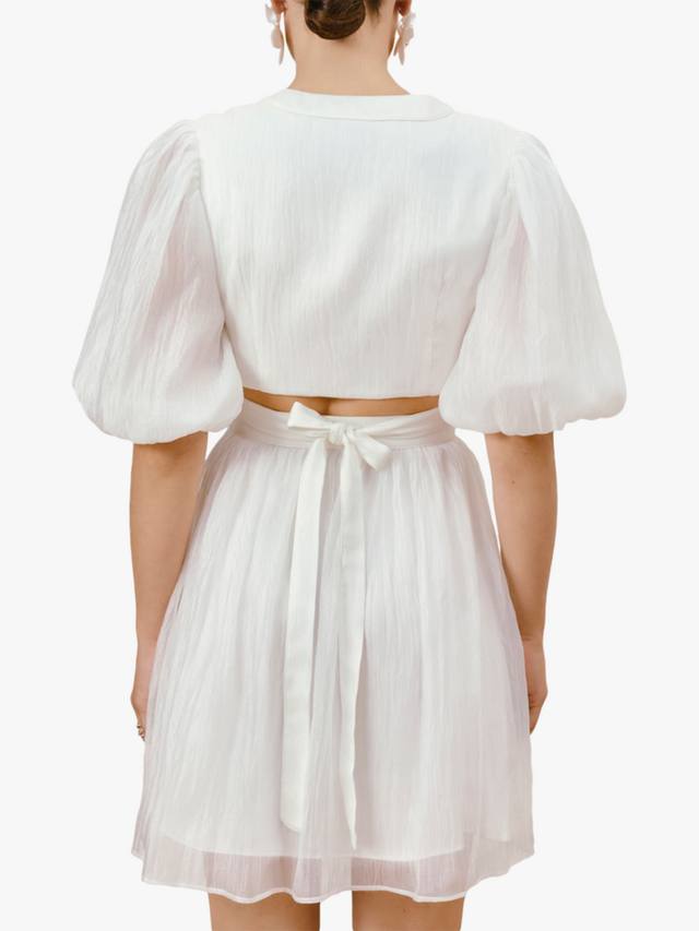 Sienna - короткое платье с современными вырезами, рукавами-баллонами и закрытой спинкой. V-образный вырез облегающего силуэта и регулируемые бретельки.