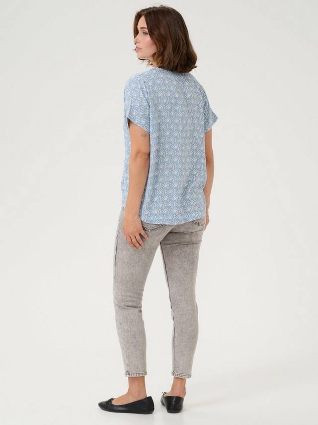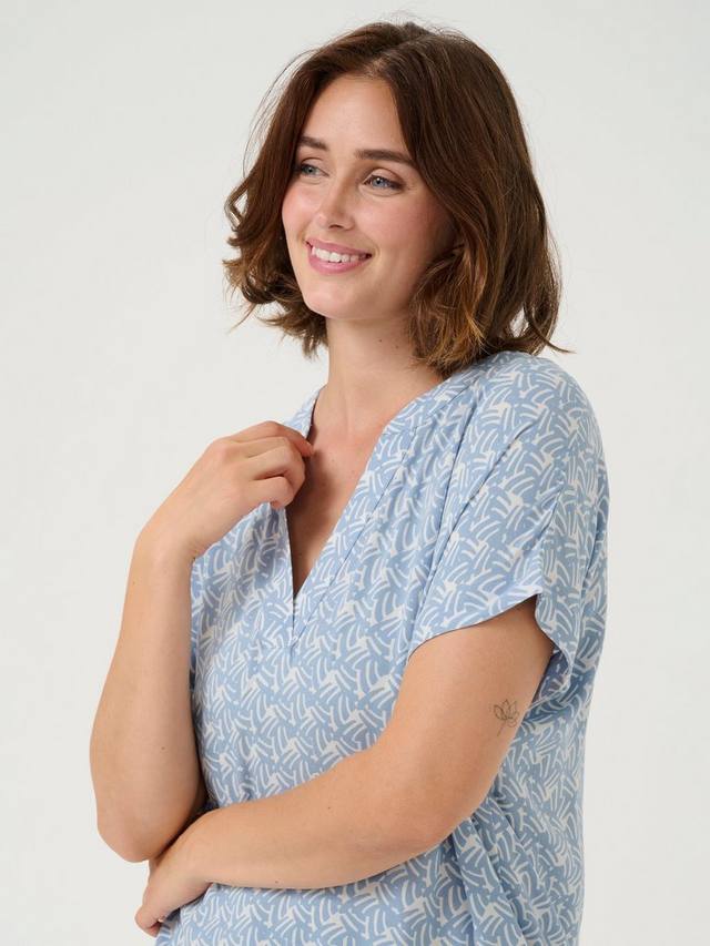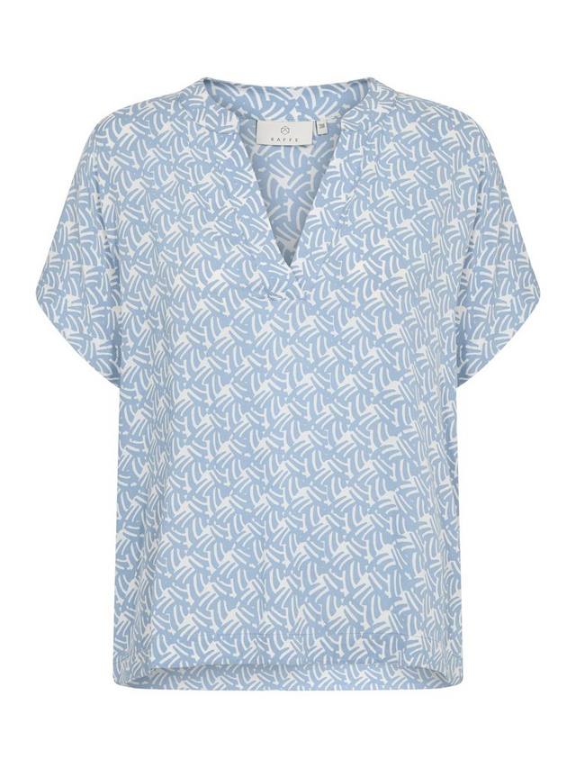 Эта блузка с геометрическим рисунком от KAFFE с классическим v-образным вырезом и короткими рукавами станет незаменимым дополнением к вашему гардеробу.
