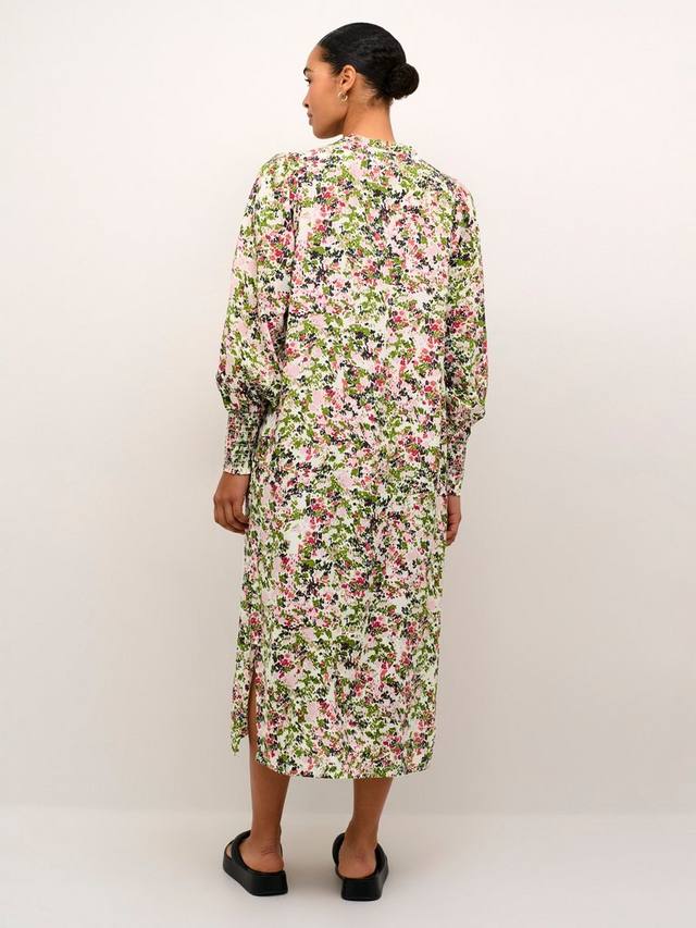 Это платье средней длины от KAFFE, являющееся образцом простоты, сшито из вискозы, которую любят за ее невесомость. Универсально подчеркивающий фигуру v-образный вырез и длинные рукава, он привлекает внимание современным абстрактным принтом.