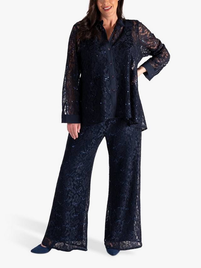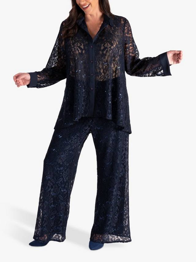 Эти кружевные брюки от chesca, облегающие фигуру и подчеркивающие ваш профиль, украшены мерцающими блестками. Естественно сидящие на талии, с достаточно широкими штанинами, они сочетаются с подходящей рубашкой и подчеркивают современный вид.