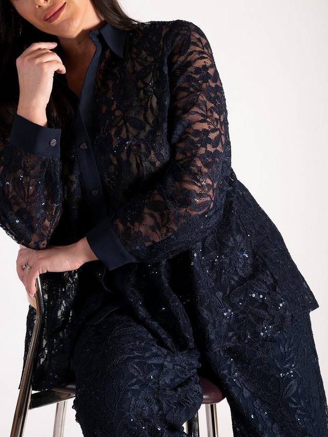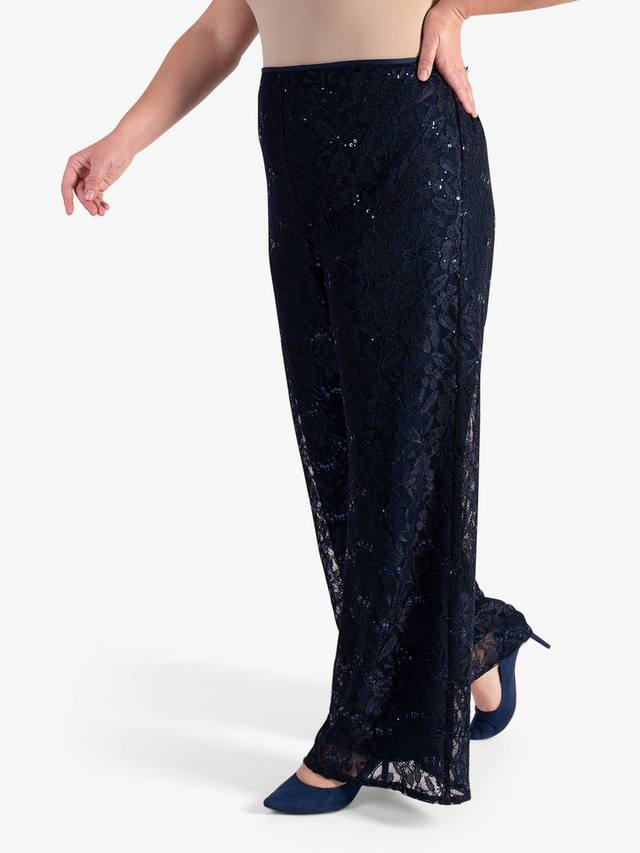 Широкие брюки с блестками и кружевом chesca, темно-синий