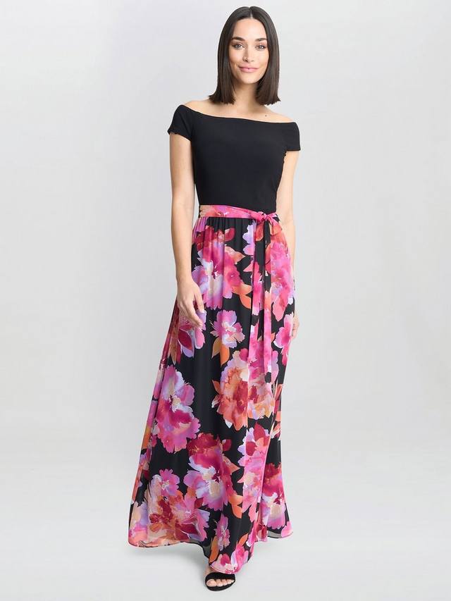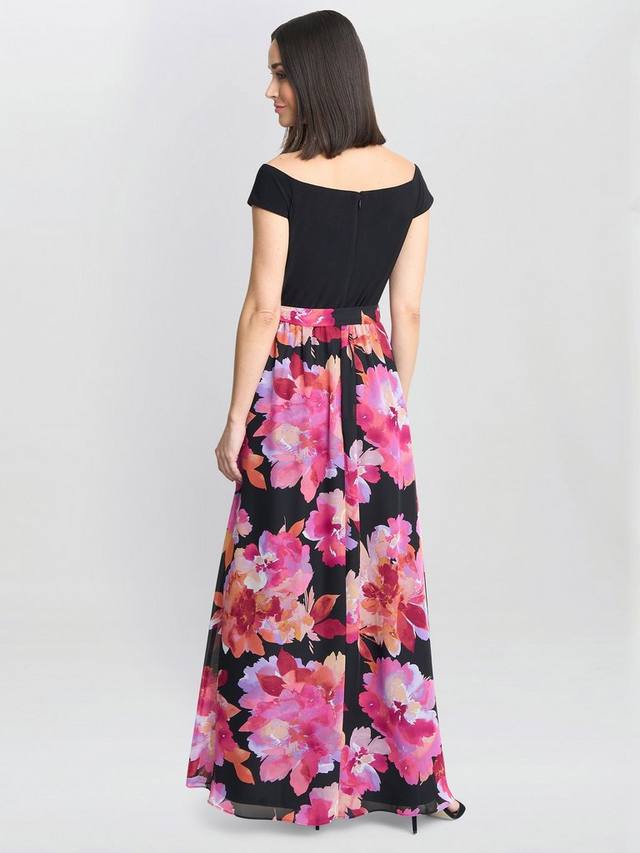 Выделяйтесь в этом эффектном макси-платье от Джины Баккони. С лифом цвета бордо из джерси на подкладке и пышной юбкой из шифона в цветочек. Оно идеально подойдет для элегантного вечернего мероприятия с парой туфель на каблуке или с босоножками на плоской подошве в солнечный день. Платье застегивается на потайную молнию сзади и имеет пояс из шифона.