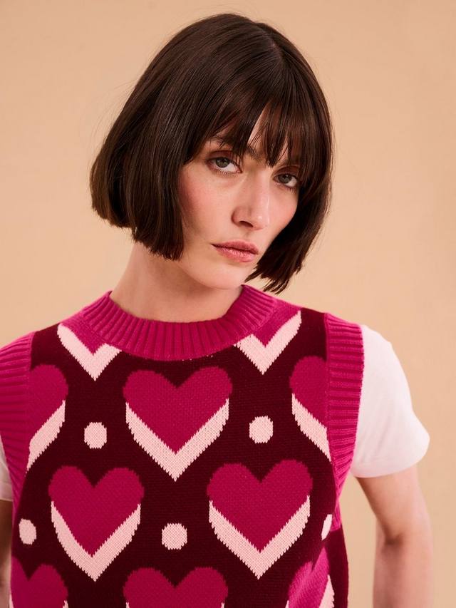 Жилет-свитер, который больше не является атрибутом дедушки, стал новым элементом повседневного гардероба. Жилет-свитер Bobbi выполнен с неподвластным времени принтом в стиле аргайл. Носите отдельно или слоями, по желанию вашего сердца.