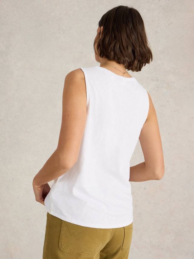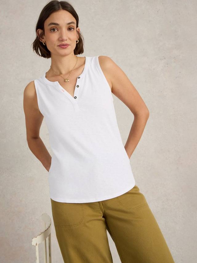 Этот топ-жилет без рукавов от White Stuff, выполненный из мягкого хлопка, спереди застегивается на кнопки. Идеально подходит для повседневных дней.