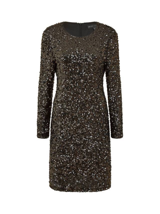 Сейчас сезон блесток! И что может быть лучше для рождественских приглашений, чем это эффектное платье с блестками от Mela. Классическая приталенная форма с круглым вырезом, длинными приталенными рукавами и облегающим силуэтом. Блестящая ткань по всему телу - идеальный аксессуар, поэтому сохраняйте шикарный стиль с блейзером и туфлями на каблуках.