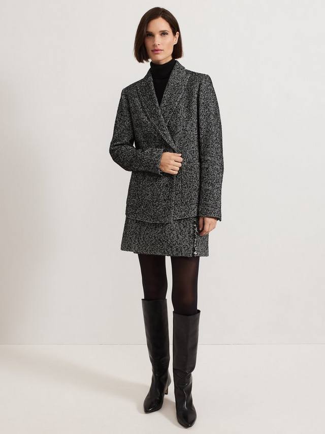 Этот двубортный блейзер от Phase Eight - элегантная верхняя одежда, которая дополнит любой образ. Он украшен фактурным принтом в клетку в елочку.