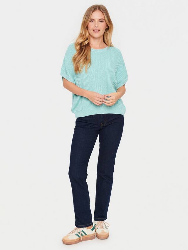 Этот мерцающий джемпер от Saint Tropez с круглым вырезом и короткими рукавами из богатой хлопчатобумажной смеси обеспечивает комфорт при носке.