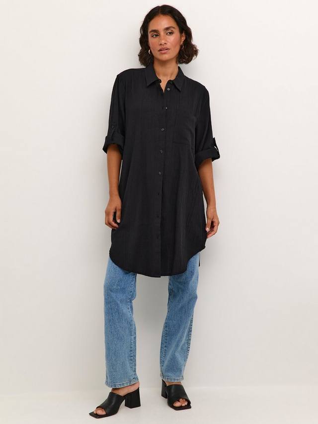 Хлопчатобумажное платье-рубашка pauline crinkle KAFFE, черный