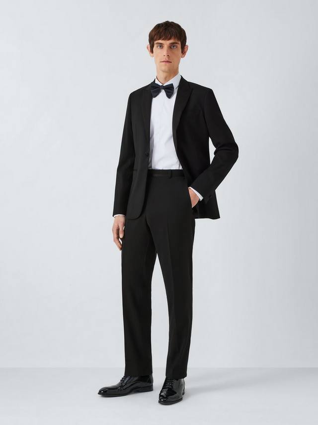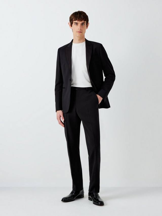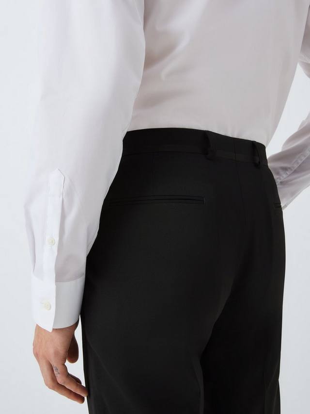 Эти брюки для ужина Kin, сшитые из смеси шерсти с легким натяжением для дополнительного комфорта, украшены контрастным поясом из атласа наполовину и пуговицами, обтянутыми атласом.