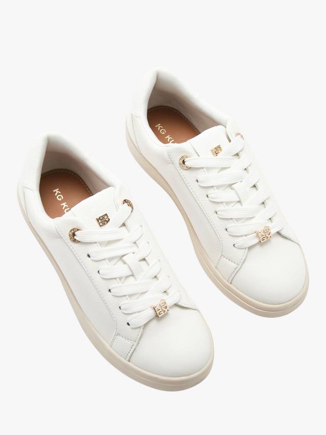 Эта пара кроссовок Eliza от KG Kurt Geiger классического силуэта с классической шнуровкой спереди. На верхней части виден золотистый логотип.