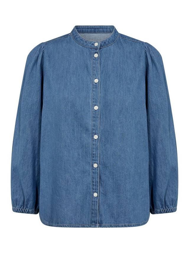 Джинсовая рубашка Nicolie с круглым вырезом и застежкой на пуговицы создает современный, неподвластный времени образ. Благодаря слегка пышным рукавам и свободному крою она идеально подойдет для непринужденного повседневного образа. Сочетайте с джинсами для создания классного образа "деним на дениме" или с юбкой для придания женственности.