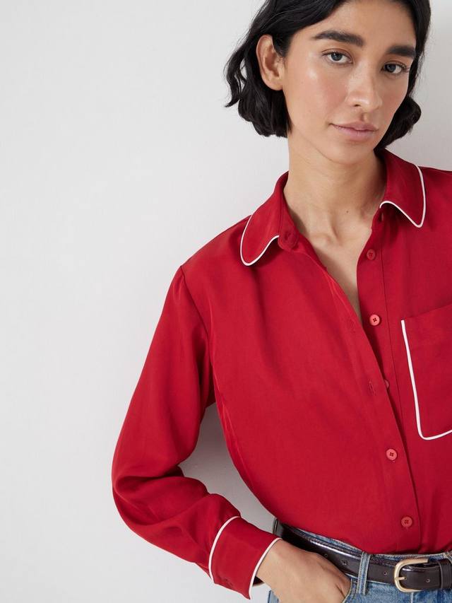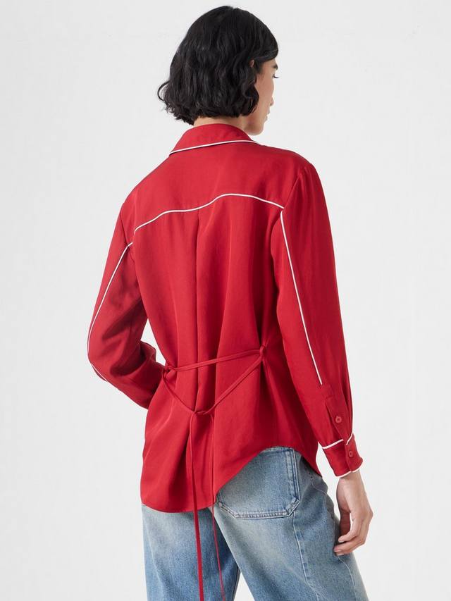 Как успешно освоить пижамный тренд? Знакомьтесь, Kinsey - шелковая рубашка, вдохновленная классическим ночным бельем, с несколькими стильными штрихами, переносящими ее на дневную территорию. Мы добавили контрастную окантовку для более спортивной отделки, а также шлевки для ремня на талии, чтобы мы могли поиграть с формой и подтянуть ее.