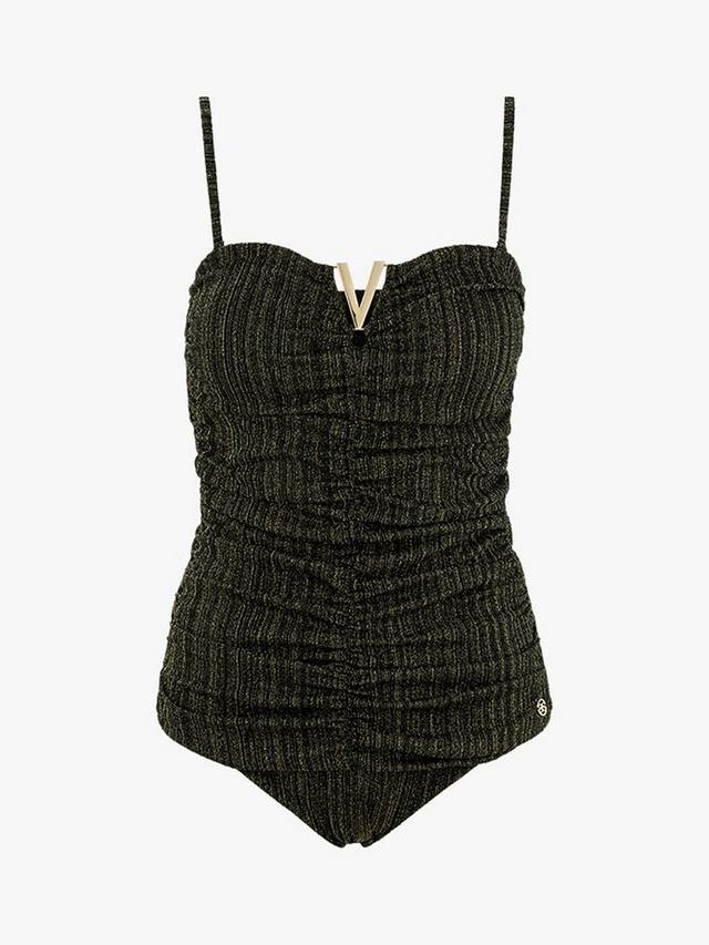 Купальник-бандо Athena, сшитый из роскошной ткани с тонким золотистым отливом, отличается изысканной отделкой и со вкусом подобранной отделкой с золотым эффектом по центру.
