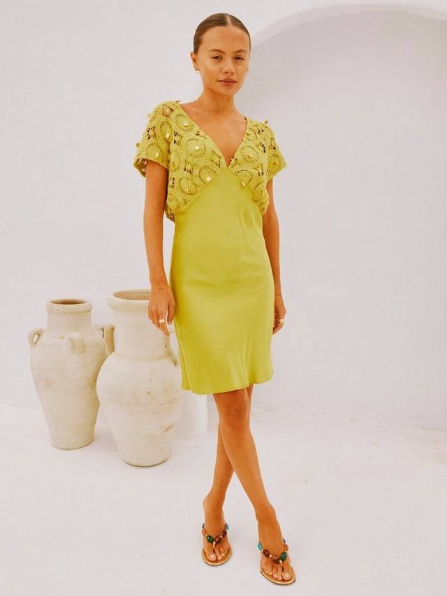 Вязаное крючком атласное платье-юбка Never Fully Dressed, оливковый