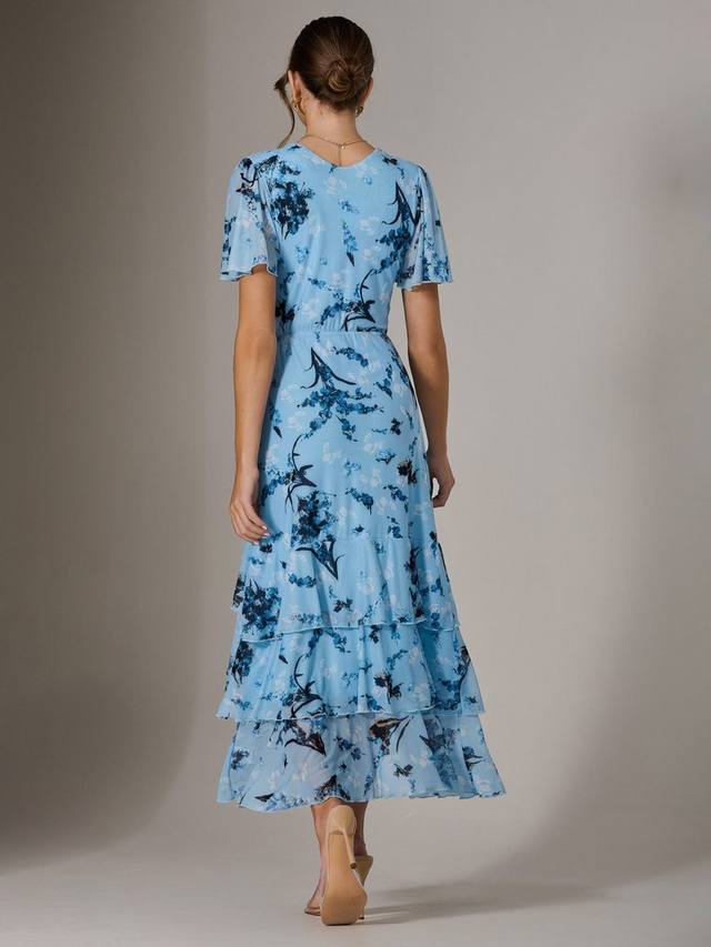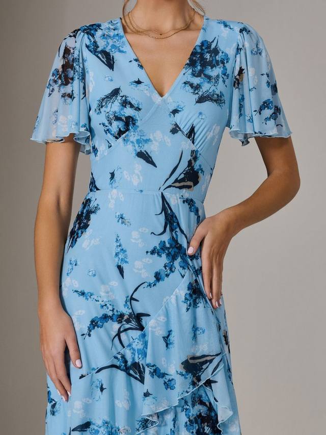 Платье мидакси с сетчатым принтом и оборкой Jolie Moi, синий