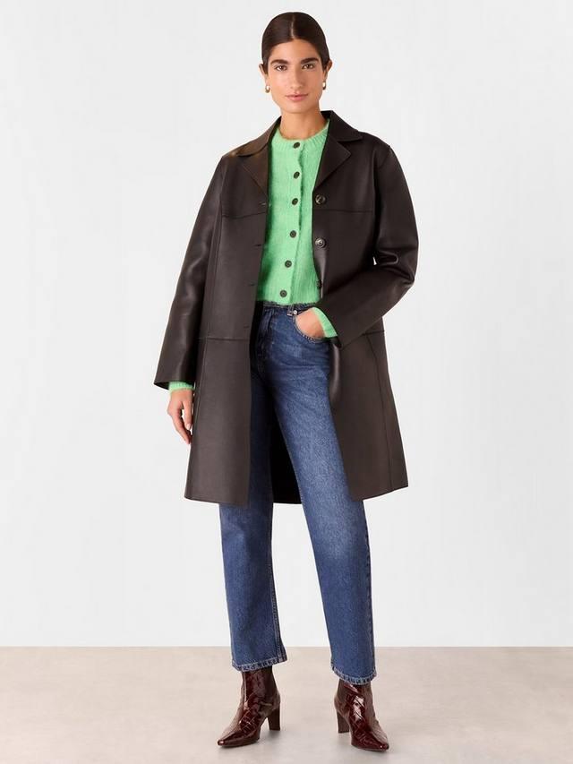 Кардиган крупной вязки с круглым вырезом и длинными рукавами от Whistles из теплой шерстяной ткани прекрасно сочетается с серым небом.