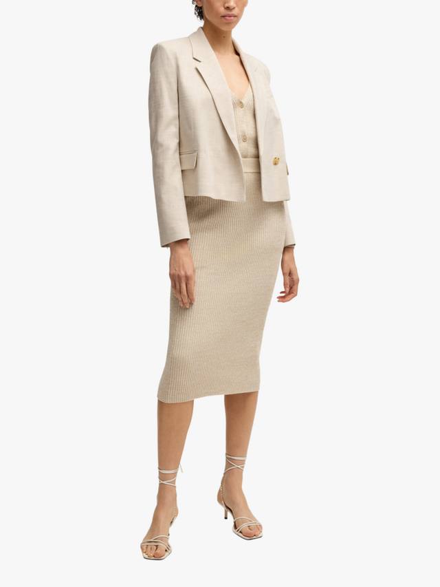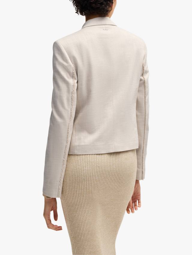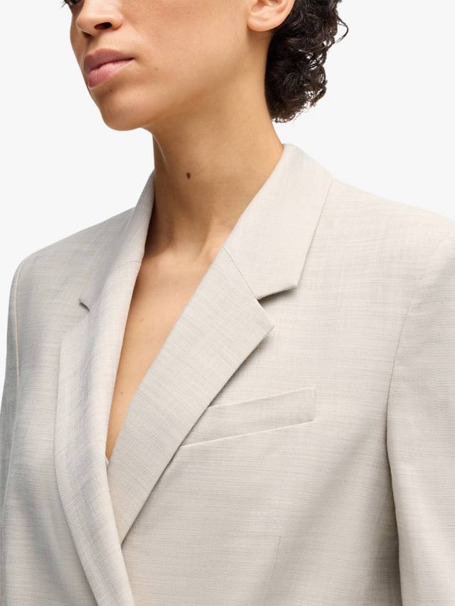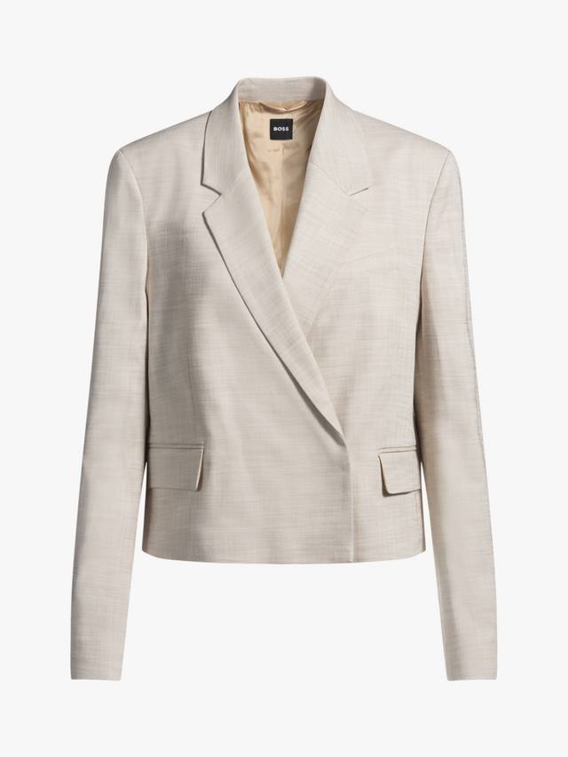 Блейзер с запахом от BOSS, тщательно очерченный до четкого силуэта, благодаря гладкой смесовой ткани обеспечивает легкость при носке.