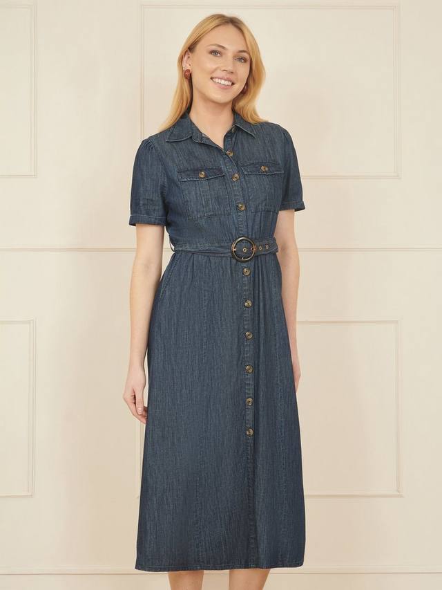 Практичное платье-рубашка из джинсовой ткани Yumi, синий
