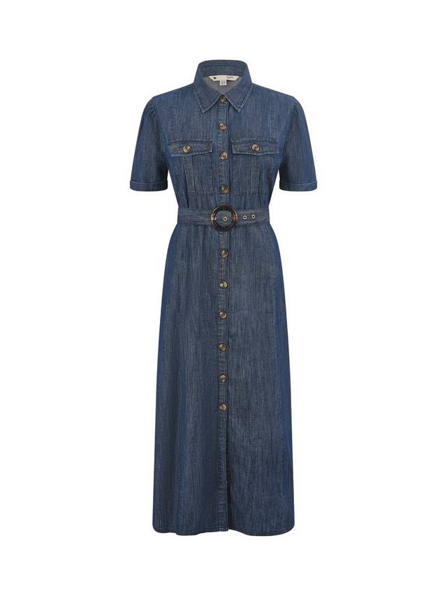 Очень стильное и практичное, это джинсовое платье идеально подходит на каждый день! Стиль на пуговицах неподвластен времени и практичен, соответствующий пояс и вырез с воротником подчеркивают достоинства. С карманами, короткими рукавами и длиной миди, все изготовлено из хлопка, что обеспечивает воздухопроницаемость и комфорт.